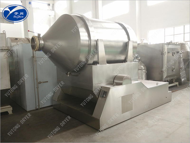 The rotary drum of the EYH two-dimensional mixer can perform two movements simultaneously, one is the rotation of the rotary drum, and the other is the swing of the rotary drum with the swing frame. The mixed material rotates, flips, and mixes inside the drum, while also undergoing left and right back and forth mixing movements with the swinging of the drum. Under the combined action of these two movements, the material is fully mixed in a short period of time. The EYH two-dimensional mixer is suitable for mixing all powder and granular materials.