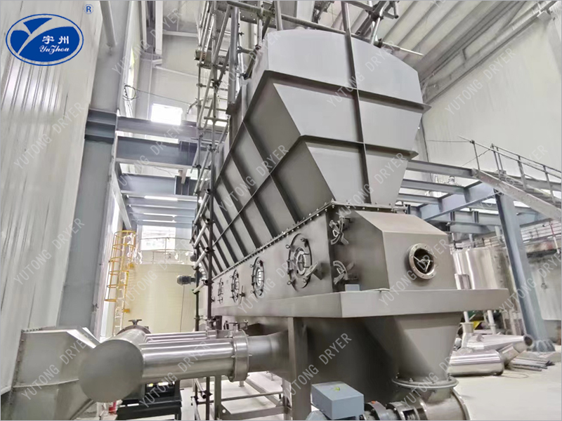 When the closed-circuit boiling dryer works, the internal wind pressure is low, and only micro positive pressure is required, so the fan power of the equipment is reduced, because the hot air is blown upward from the lower part of the hopper net plate under positive pressure, and the wind penetration is strong. Although the boiling height of the material is not high, the contact between the hot air and the material is more full, and the drying rate is faster. After the fan power of the equipment is reduced, the noise of the equipment is reduced, and energy is also saved.