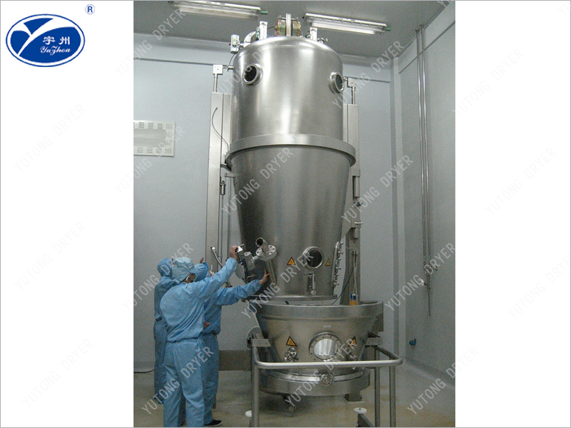 FL series boiling pelletizing machine is also known as "one-step pelletizing machine", the use of boiling pelletizing method is the result of the comprehensive application of spray technology and fluidization technology, the use of high-speed hot air flow to fluidize powder, and then the bonding effect of atomized adhesive, so that the solid powder bridge each other, agglomeration, and gradually form particles. This machine is based on the traditional double column air cap type granulator, which is a newly developed single column airbag sealed granulator, suitable for the granulator drying operation in pharmaceutical, chemical, food and other industries.