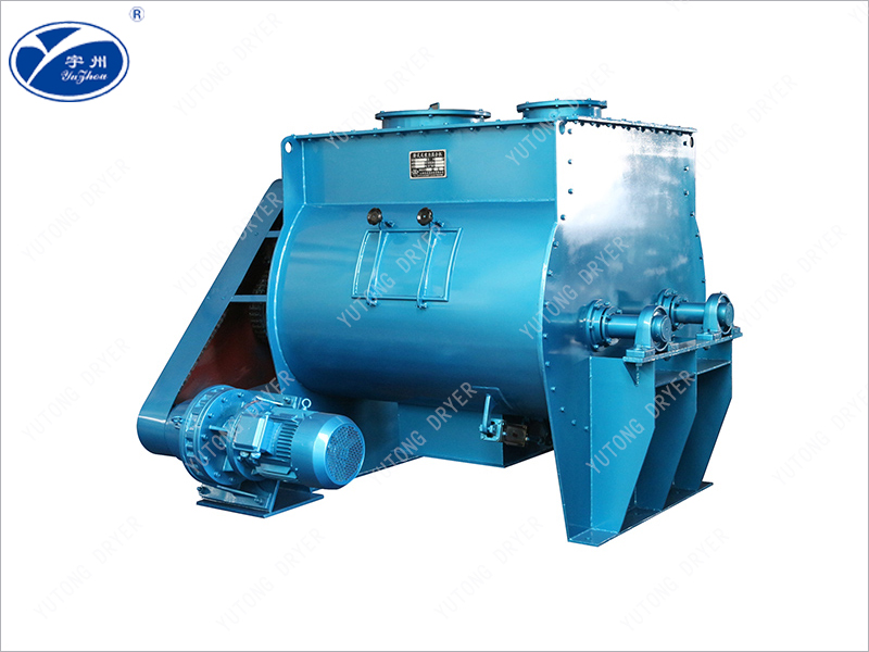 本系列混合機以強烈、高效混合為特點、臥式筒體內兩根攪拌等速反向旋轉,上特殊布置的槳葉確保物料徑向、環向、軸向三向運動,形成復合循環,在極短的時間內達到均勻混合。