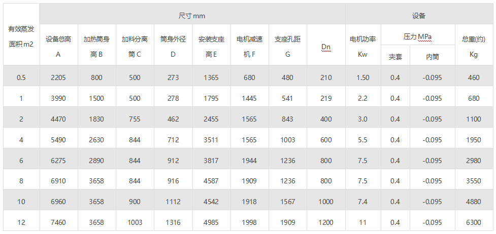 2.表重D表示夾套外徑,Dn表示蒸發筒體的內徑;