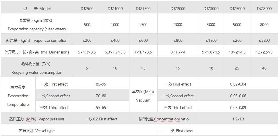 1、本濃縮器采用外加熱式自然循環形式與負壓蒸發方式,具有蒸發速度快,濃縮比重大,可達1.2-1.3。
