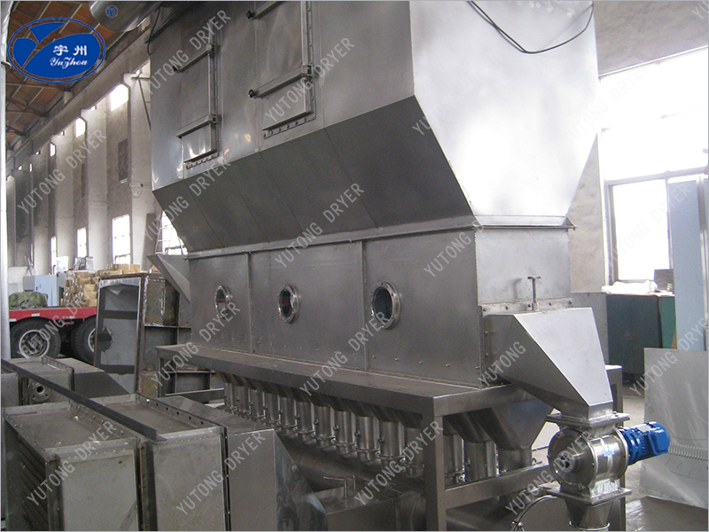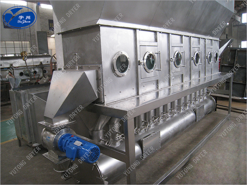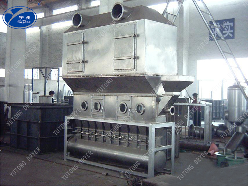潔凈的熱風(fēng)經(jīng)閥板分配進(jìn)入床體內(nèi),從加料器進(jìn)入的濕物料被熱風(fēng)形成沸騰狀態(tài)。由于熱風(fēng)與物料廣泛接觸,增強(qiáng)了傳熱傳質(zhì)的過(guò)程,因此在較短時(shí)間內(nèi)就可干燥。如用連續(xù)型,物料從床體的一頭進(jìn)入,經(jīng)過(guò)幾十秒至幾分鐘沸騰干燥,自動(dòng)從床體另一頭流出。本設(shè)備一般進(jìn)行負(fù)壓操作。