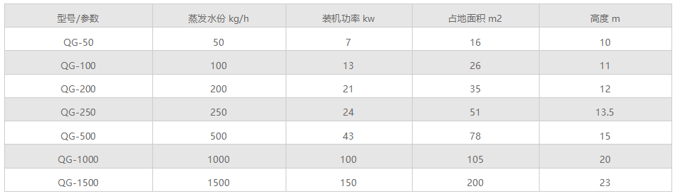 1、干燥強(qiáng)度大,設(shè)備投資省,蒸發(fā)能力大,可從50kg?H2O/h~2000kg?H2O/h。
