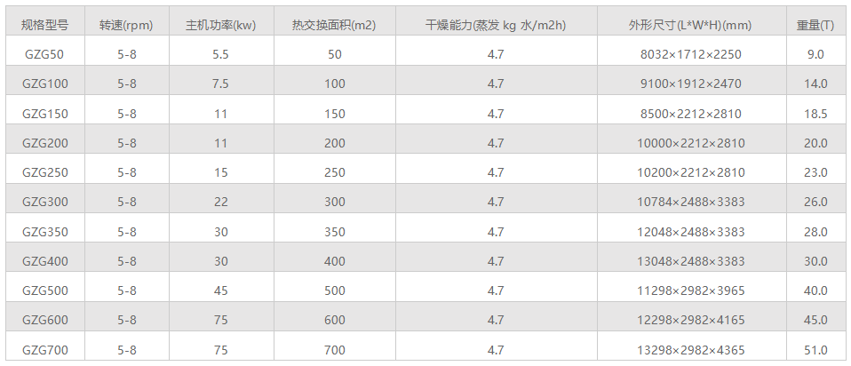 GZG管束式干燥機是間接加熱接觸式干燥機,既可順流干燥也可逆流干燥。是目前大部分國家使用的廣泛、的干燥機之一。其主要優點是經濟實用。在各種干燥設備中,動力消耗低,熱耗低,每蒸發1公斤水僅需要量1.5-2公斤蒸氣。是沸騰式干燥機的50%。烘干1噸發酵草粉耗電僅需要15千瓦/時,是流化床的25%,電耗氣耗均達到國外同類產品的水平。可干燥高水份物料,干燥彈性大(能視不同的物料性質和水份要求對干燥時間進行調整);連續生產(自動化程度高)也可間歇生產(適合于特殊生產工藝)。該機附加配套設備少,占地面積小。工藝緊湊,受磨損件極少,易于安裝。