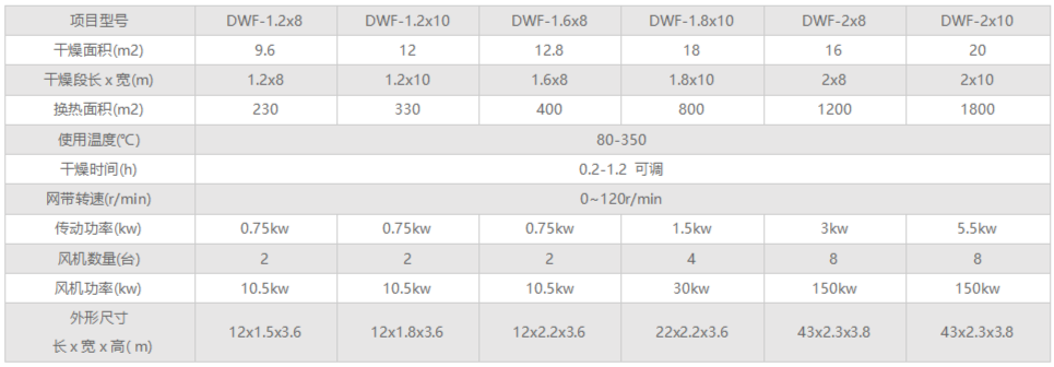DWF系列氣流噴射式帶式干燥機適用于透氣性差的物料干燥,典型的例如:紙漿干燥、涂膜布干燥、板材類干燥。