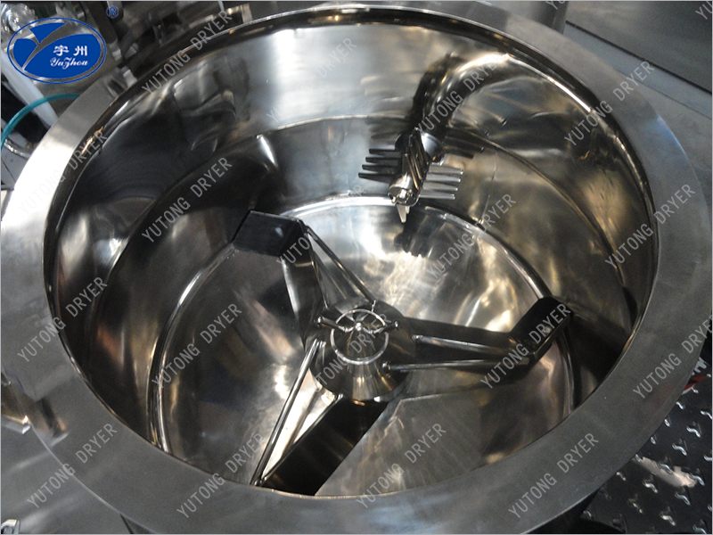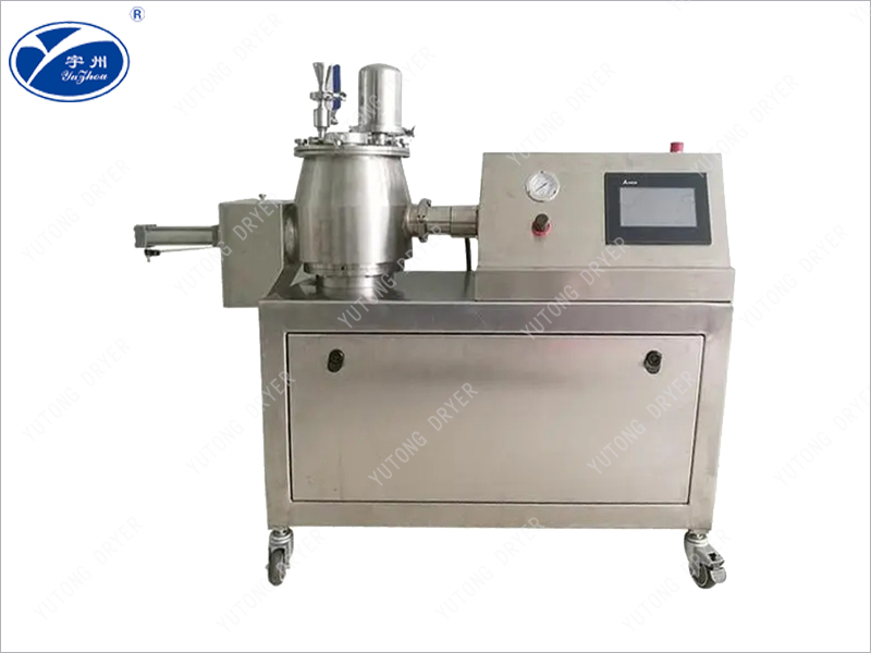 粉體物料與粘合劑在圓筒形容器中由底部混合漿充分混合成濕潤軟材,然后由側(cè)置的高速粉碎槳切割成均勻的濕顆粒。