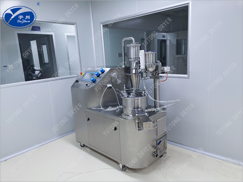 DLB系列多功能制粒包衣機是一種將噴霧干燥制粒技術和流化床、噴動流化床技術以及旋轉造粒技術結合為一體的新型固體制劑多功能設備。主要適用于中、西藥、食品、化工等行業的制粒、制丸、包衣。如壓片前的顆粒、硬膠囊顆粒、中、西藥顆粒劑和飲料中固體飲料(固體速溶顆粒),特別適用于緩釋膠囊、顆粒。 所制備的顆粒為多孔性速溶顆粒??蔀橹旅艿那颍ㄍ瑁╊w粒,真球度極高。設備密封性好、平滑、無死角、操作方便。整個工藝均用單機即可運行。并在同一密閉負壓容器內完成制粒、制丸、包衣。