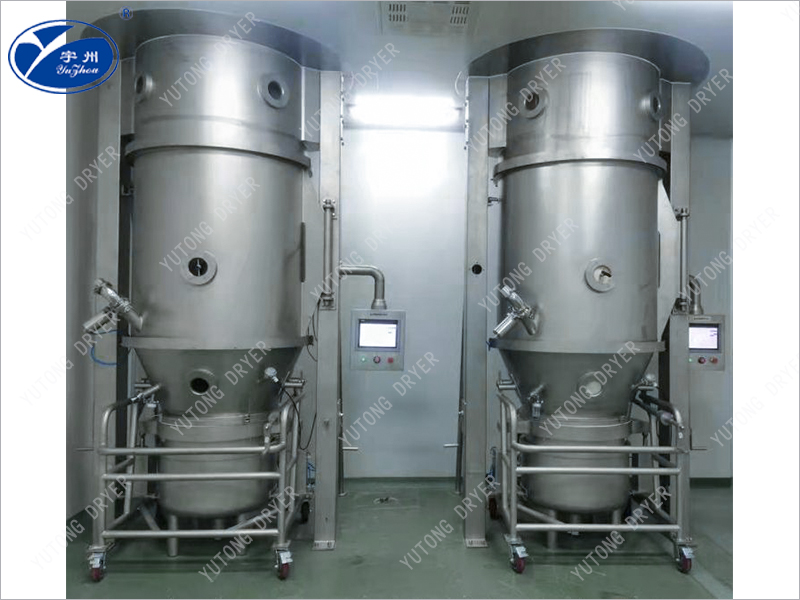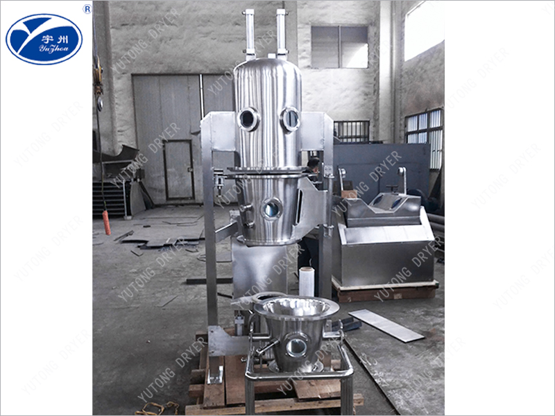 流化床分風板做成特殊環形片式結構,各片形成層疊形式,讓氣流從葉片的間隙通過,形成環流狀的高速氣流,從而使物料呈旋渦狀似的規則運動,通過安裝在側壁的氣動噴嘴將粘合劑或包衣液噴入規則流物料層,從而將粉體制成顆粒或得到連續均勻的膜衣。