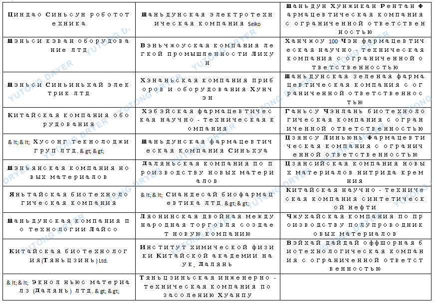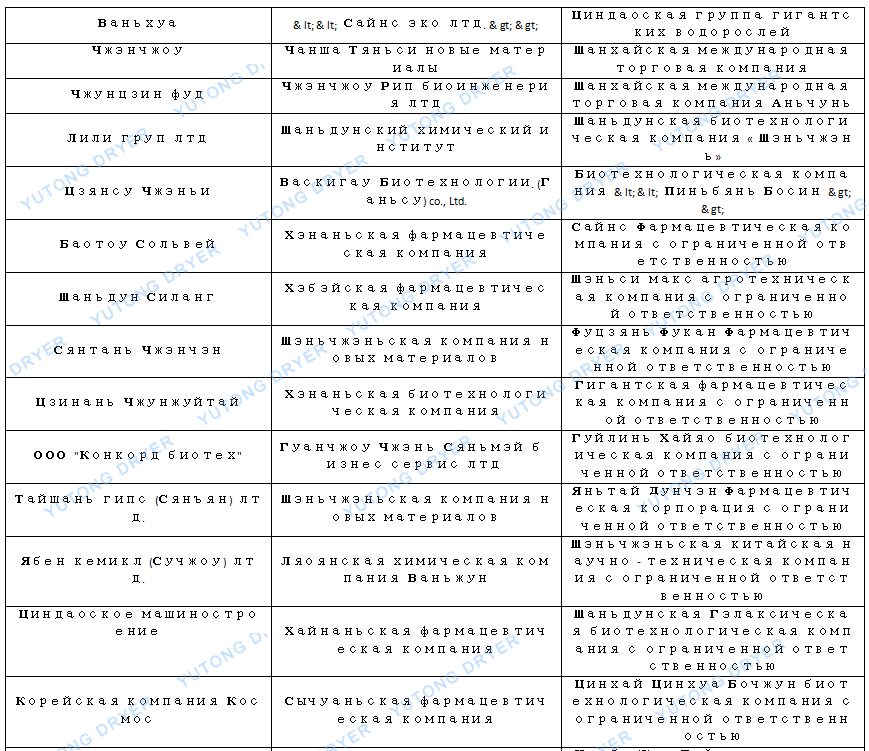 Список пользователей центробежных распылительных сушилок серии LPG: