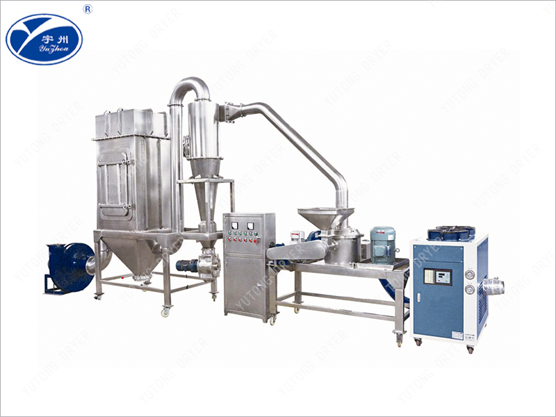 Материал поступает в дробилку через бункер и спиральный конвейер. Измельченный материал срезается высокоскоростными лопастями, чтобы получить измельчение. Затем материал подается в циклонный сепаратор, мешковый пылеуловитель, который транспортирует выбросы через воздух с отрицательным давлением для удовлетворения требований продукта.