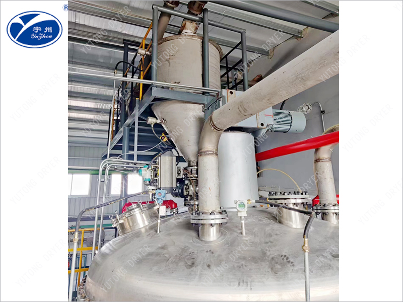 Сухие материалы, выходящие из нижнего слоя, могут быть упакованы непосредственно. Производственная мощность сушки может быть увеличена за счет добавления вспомогательного оборудования, такого как нагреватели ребра, конденсаторы для рекуперации растворителей, мешковые фильтры и вентиляторы. Для термочувствительных материалов растворитель может быть легко переработан и может быть использован для пиролиза и реакции.